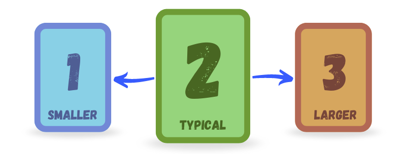 I wanted to explore what a simplified model of estimations might look like, which more clearly conveys whether a thing is a typical piece of work, or whether it’s bigger or smaller.
